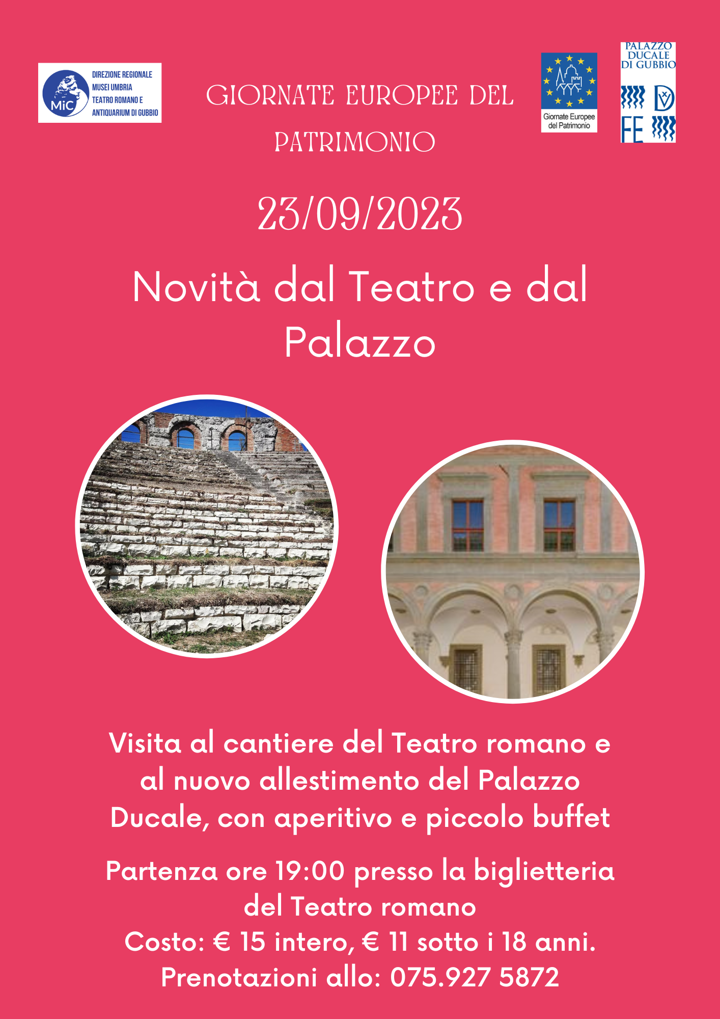 Visita al cantiere del Teatro Romano e al nuovo allestimento del Palazzo Ducale, con aperitivo e piccolo buffet.