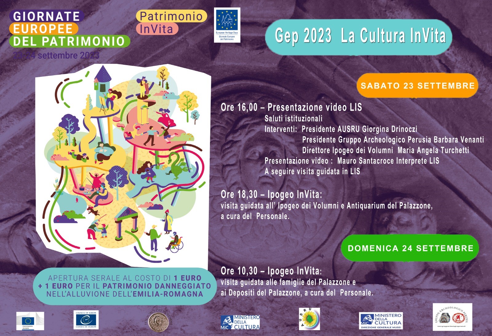 Per la prima volta, in occasione delle GEP 2023, grazie alla collaborazione e al sostegno delle associazioni AUSRU e Gruppo Archeologico Perusia, l’Ipogeo dei Volumni si dota di due video in LIS, realizzati da Mauro Santacroce, Moira Pompili e Andrea Bettocchi, testi a cura della Direttrice Maria Angela Turchetti.
