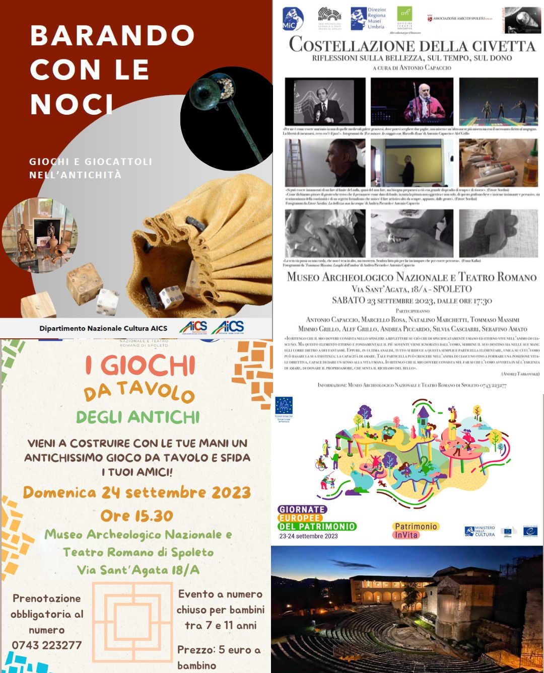Sabato 23 settembre, ore 16:00 – Presentazione del progetto “Barando con le noci. Giochi e giocattoli nell’antichità” a cura di Elisa Laschi in collaborazione con il Dipartimento Nazionale Cultura AICS.