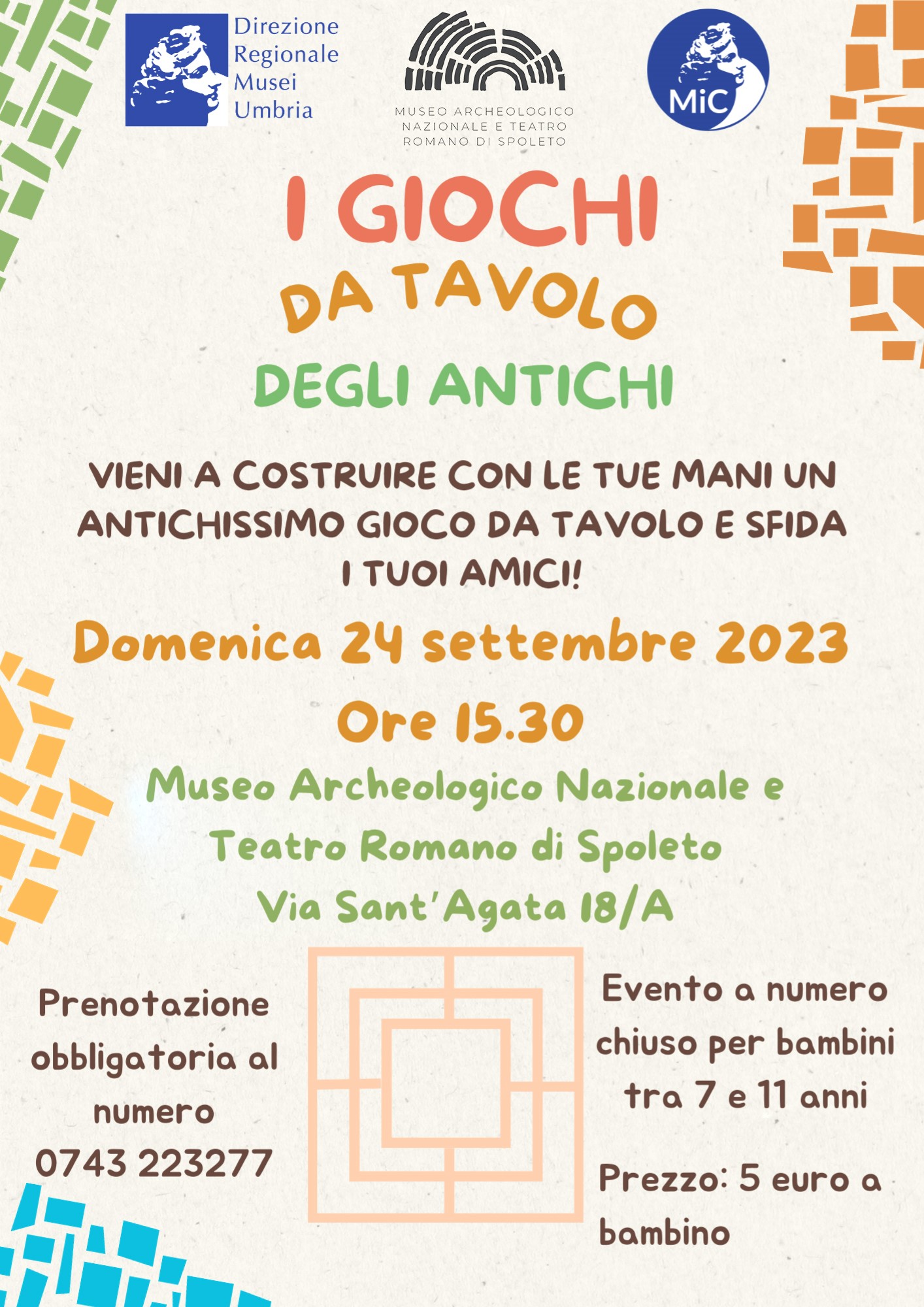 Domenica 24 settembre, ore 15.30 – laboratorio “II giochi da tavolo degli antichi” a cura di Elena Stambuco.